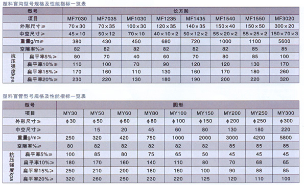 目前塑料芯體有矩形、中空矩陣、圓形中空?qǐng)A形等多種結(jié)構(gòu)形式。該材料克服了傳統(tǒng)盲溝的缺點(diǎn),具有表面開孔率高,集水性好,空隙率大,排水性好,抗壓性強(qiáng), 耐壓性好,柔性好,適應(yīng)土體變形,耐久性好,重量輕,施工方便,工人勞動(dòng)強(qiáng)度大大下降,施工效率高,因而受到施工單位的普遍歡迎,并得到廣泛的應(yīng)用。